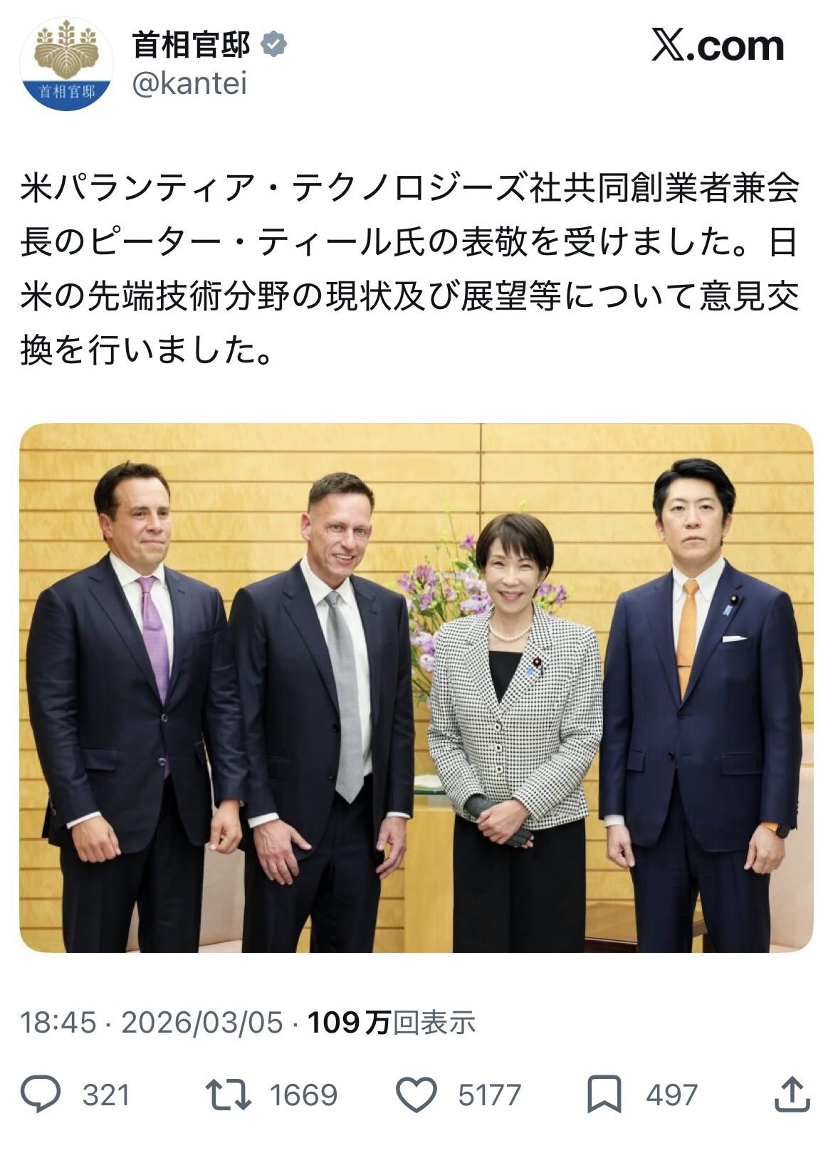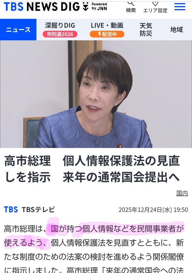 (最近パランティア社と高市総理は会談をしました。國民の全ての情報が一つになること、また世界統一の統合管理システムになることはかなり危険です。)