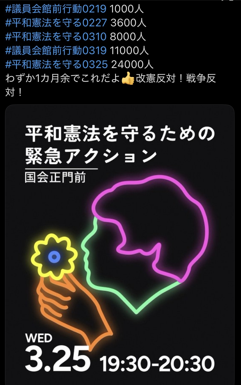 ※立憲民主新潟県連に問い合わせたところ『立憲は改憲派である』(担当大久保様)とのこと。9条への見解は個人のご判断だと思うので新潟開催のデモがある事を党内連絡して欲しい旨伝えると『党内伝達はしない、連合からの伝達はするが立憲は大きいので市民の声には対応しない、立憲はそういう政党だ』とのことでした。