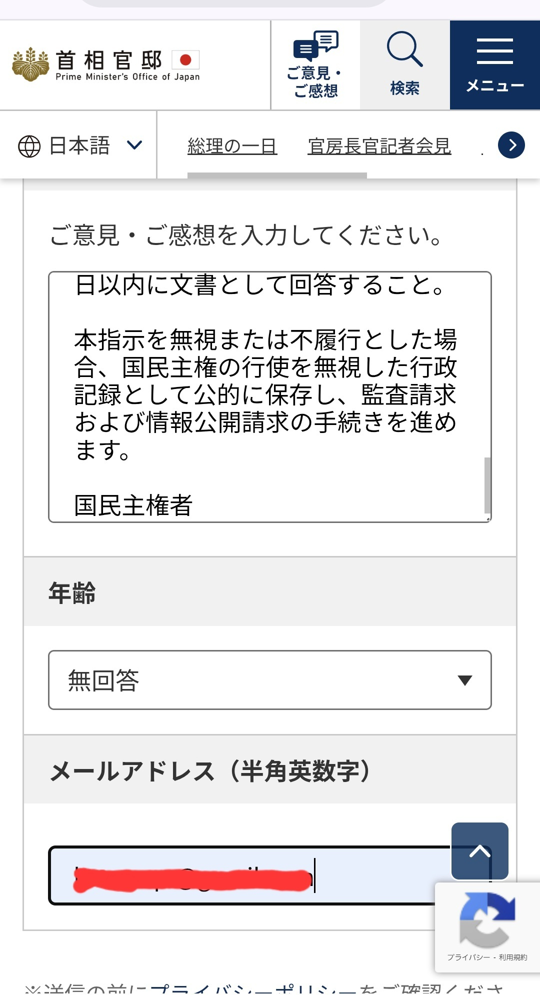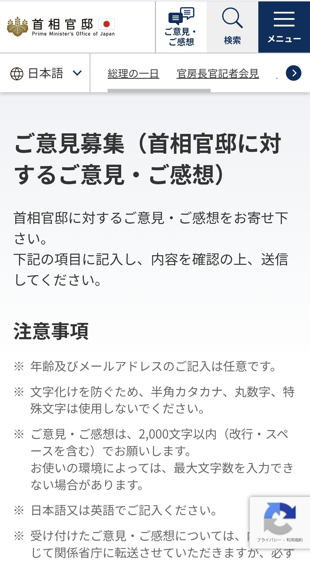 👉 https://www.kantei.go.jp/jp/forms/goiken.html